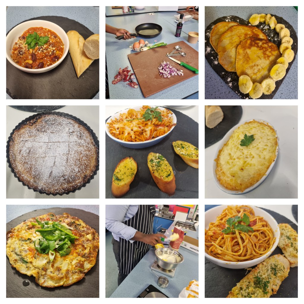 Kali Davidson – a senior member of staff at UCB – welcomed some of our volunteers and some from TAWS – to a day to cook and eat together. A wonderful opportunity to use state of the art facilities, supported by a senior lecturer to make a delicious meal. We collect surplus bakery items from UCB on a regular basis.